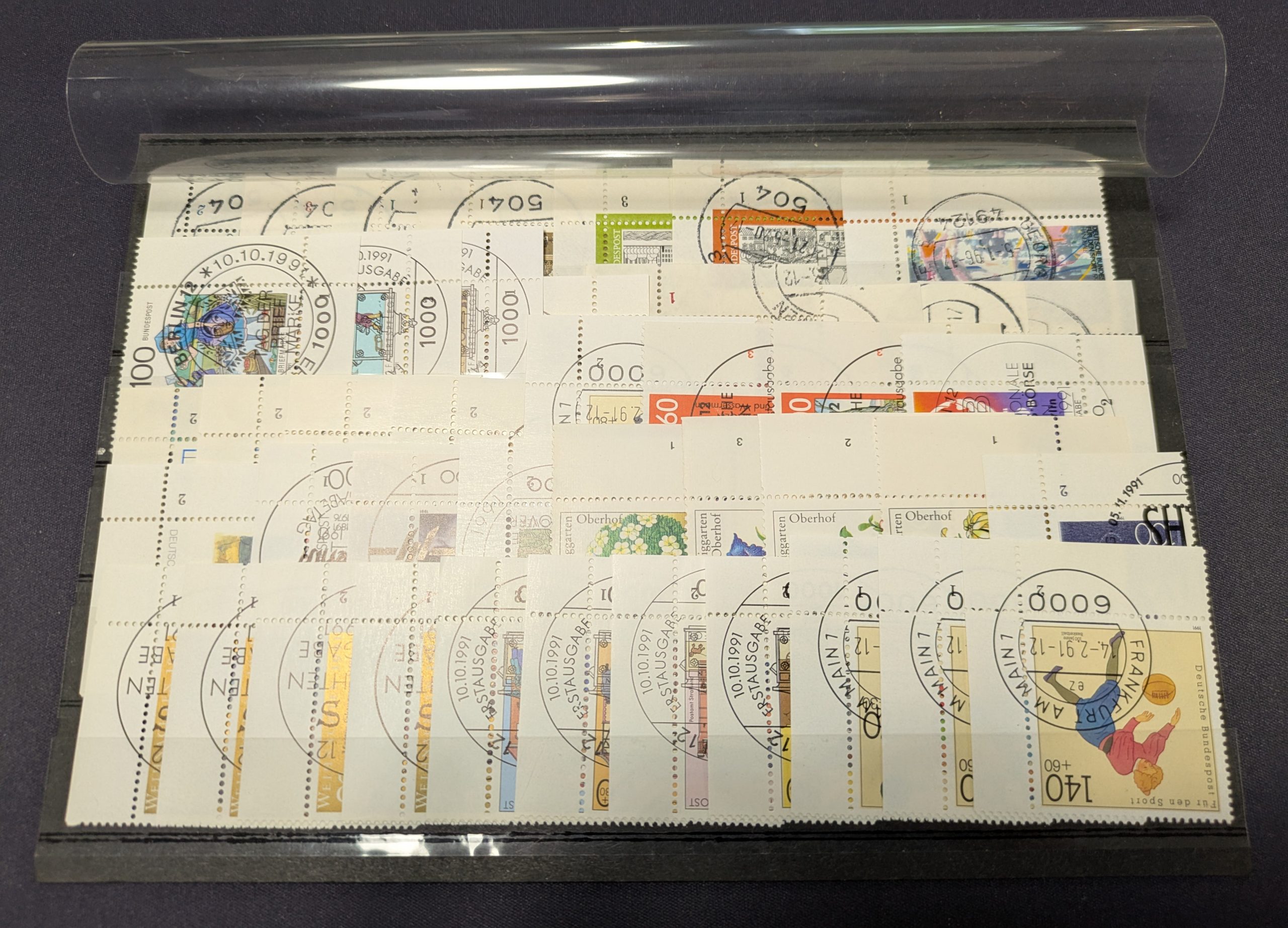 Zum Verkauf steht ein Lot von 43 Briefmarken der Bundesrepublik Deutschland, alle gestempelt und jeweils als Eckrandstücke mit Formnummer.