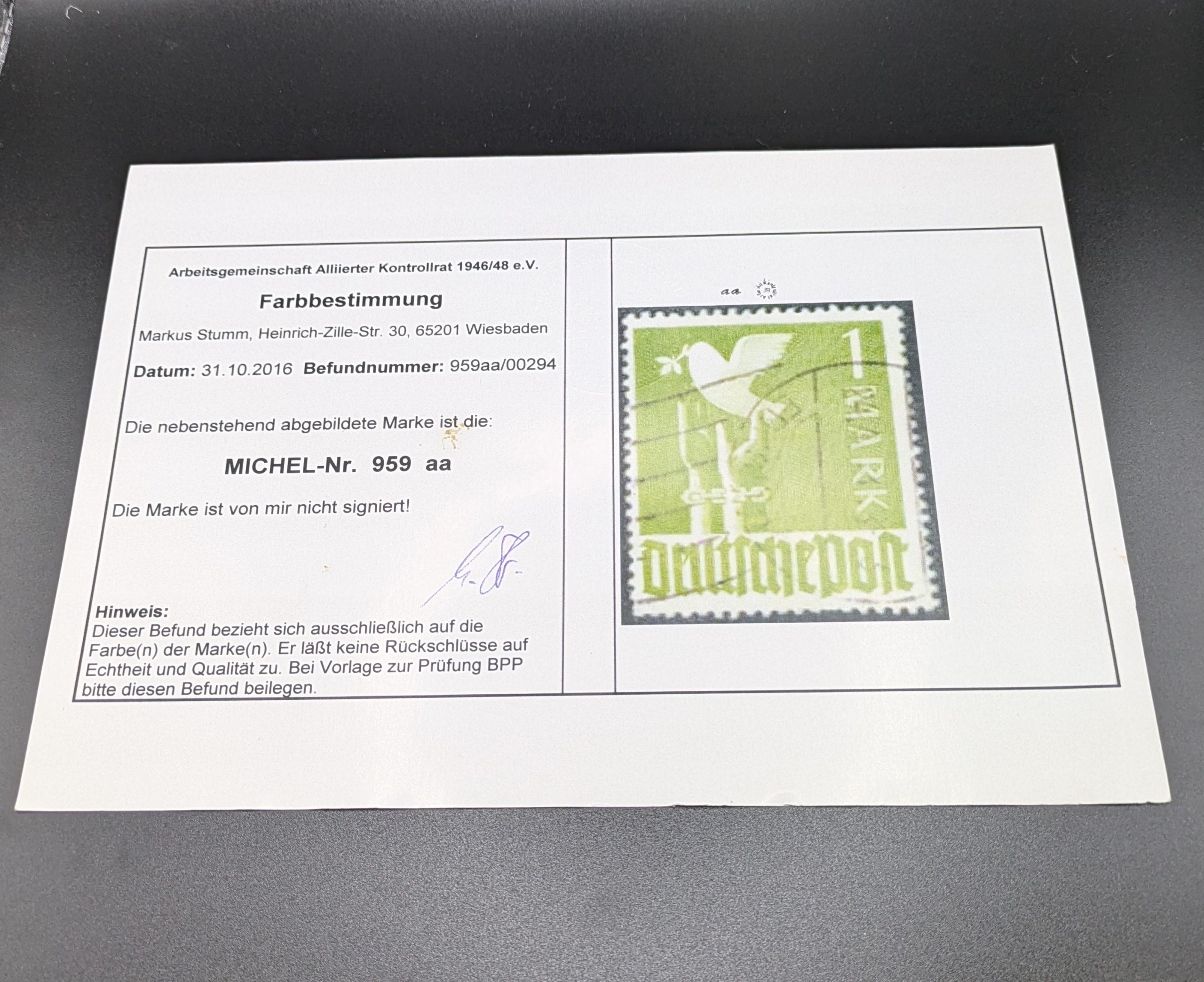 Zum Verkauf steht eine gestempelte Briefmarke Mi.-Nr. 959aa, sorgfältig geprüft und farbbestimmt. Diese Briefmarke überzeugt durch ihre einwandfreie Erhaltung, den klaren Stempel und die originalgetreue Farbgebung, die sie zu einem attraktiven Stück für Sammler macht.