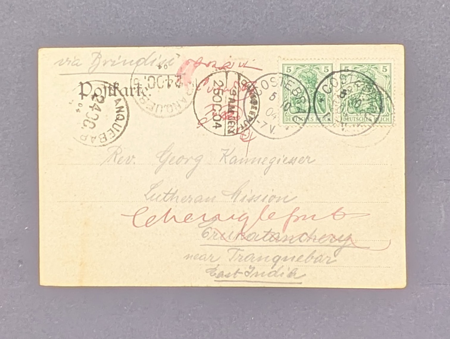 Solche Destinationen nach Ostindien sind im Bereich der Deutschen Reichspost-Philatelie nur in geringer Zahl bekannt und werden besonders von Postgeschichtlern und Ansichtskartensammlern geschätzt. Ein seltenes und attraktives Sammlerstück, das sowohl thematisch (Friedrichsthal / Auslandspost) als auch philatelistisch überzeugt.
