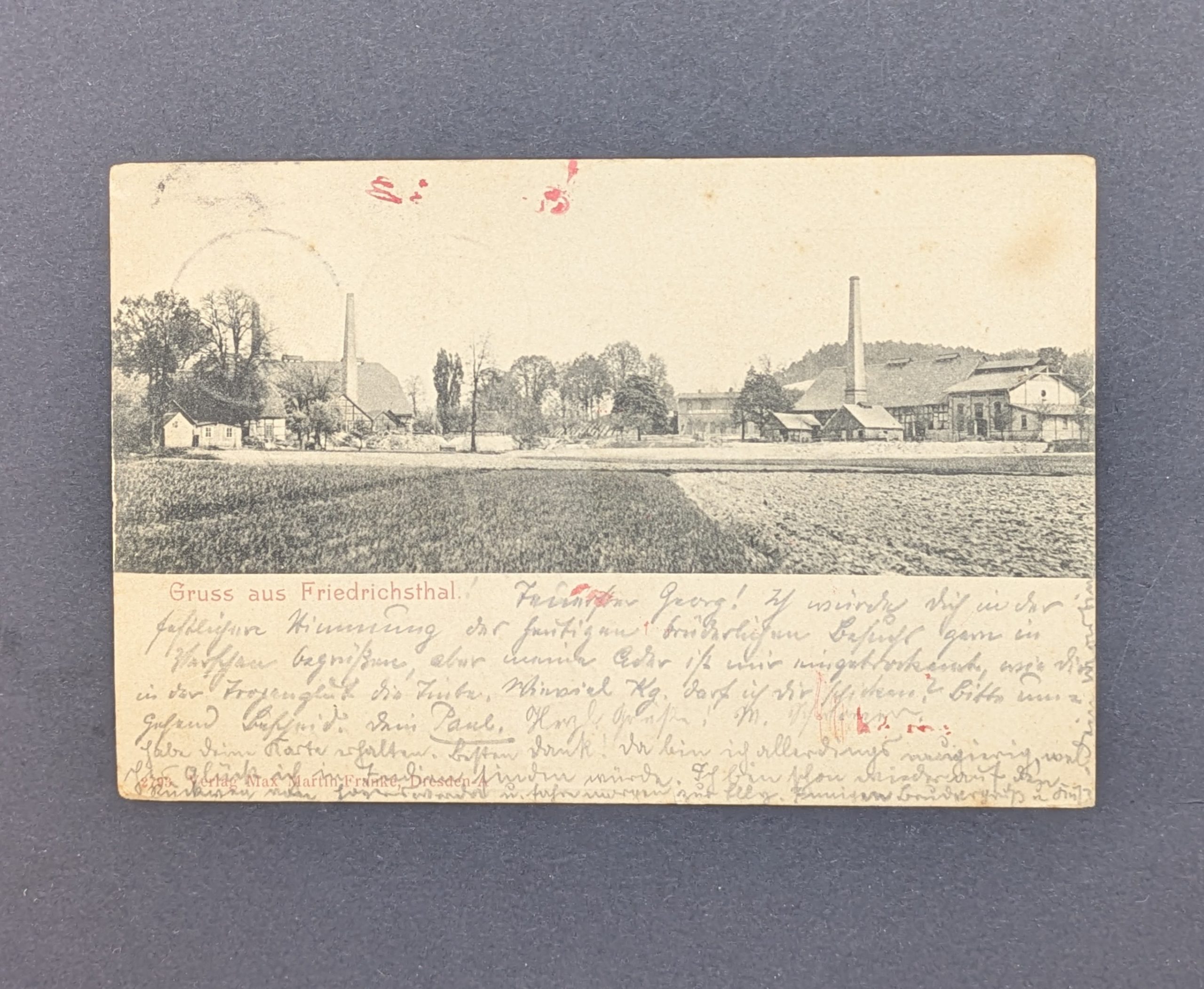 Angeboten wird eine historische Ansichtskarte aus Friedrichsthal, frankiert mit einer Mehrfachfrankatur der Mi.-Nr. 70 (zwei Exemplare), gelaufen im echten Bedarfsgebrauch nach Chingleput (East India). Diese außergewöhnliche Auslandssendung stellt eine philatelistische Rarität dar, da Poststücke aus dem Deutschen Reich in dieser Zeit nach Indien nur äußerst selten vorkommen.