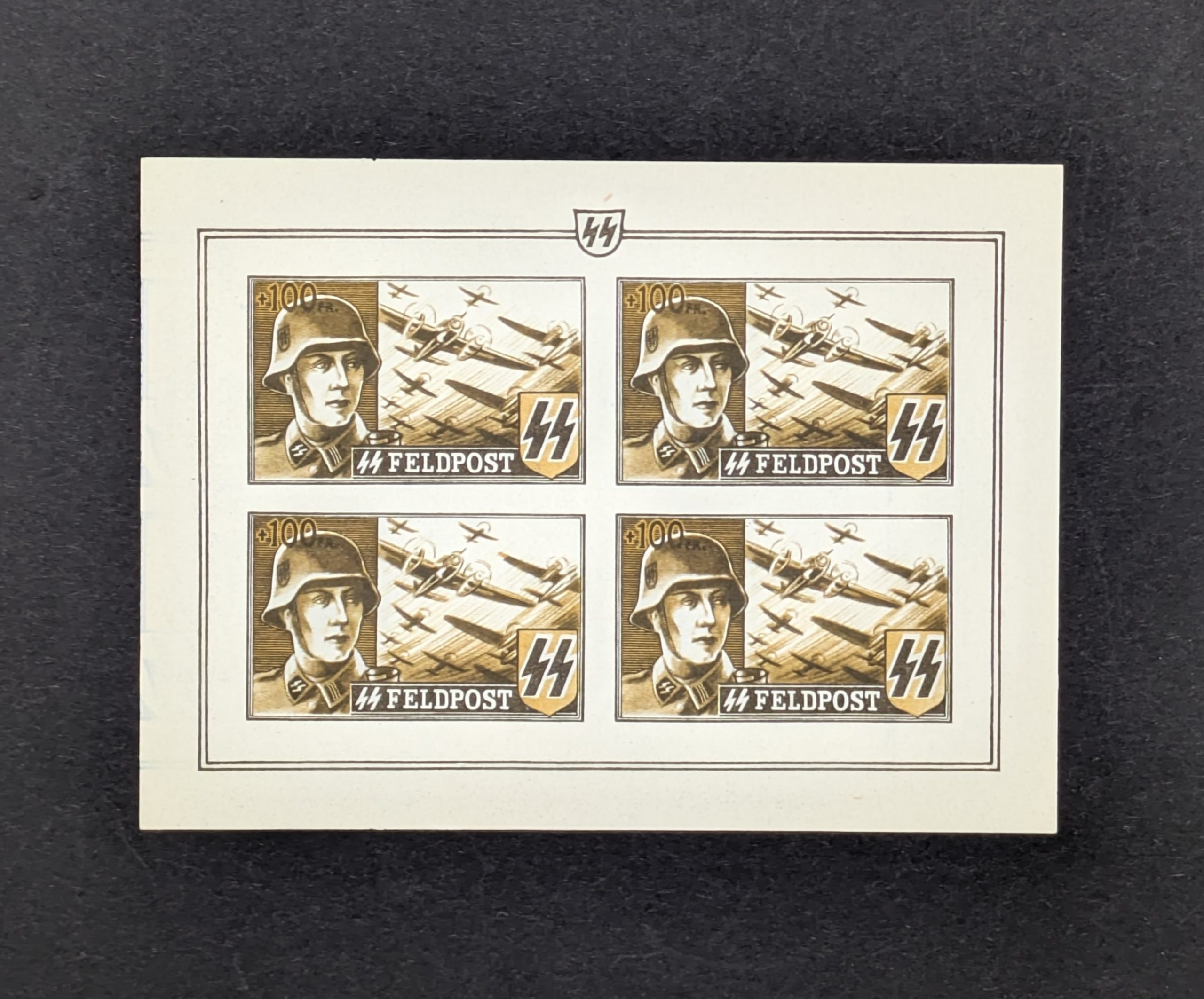 Diese ungummierte Kleinbogen-Ausgabe stammt aus der Zeit der deutschen Besetzung Belgiens (1939-1945). Bei der hier vorliegenden Variante handelt es sich um die Ausgabe mit der Michel-Nummer XIX B P (Privatausgabe Spendenvignette) aus Belgien, rückseitig bedruckt mit der Michel-Nummer XVIII. Der Kleinbogen ist doppelt signiert, was ihn zu einer besonders attraktiven Rarität für Sammler macht.