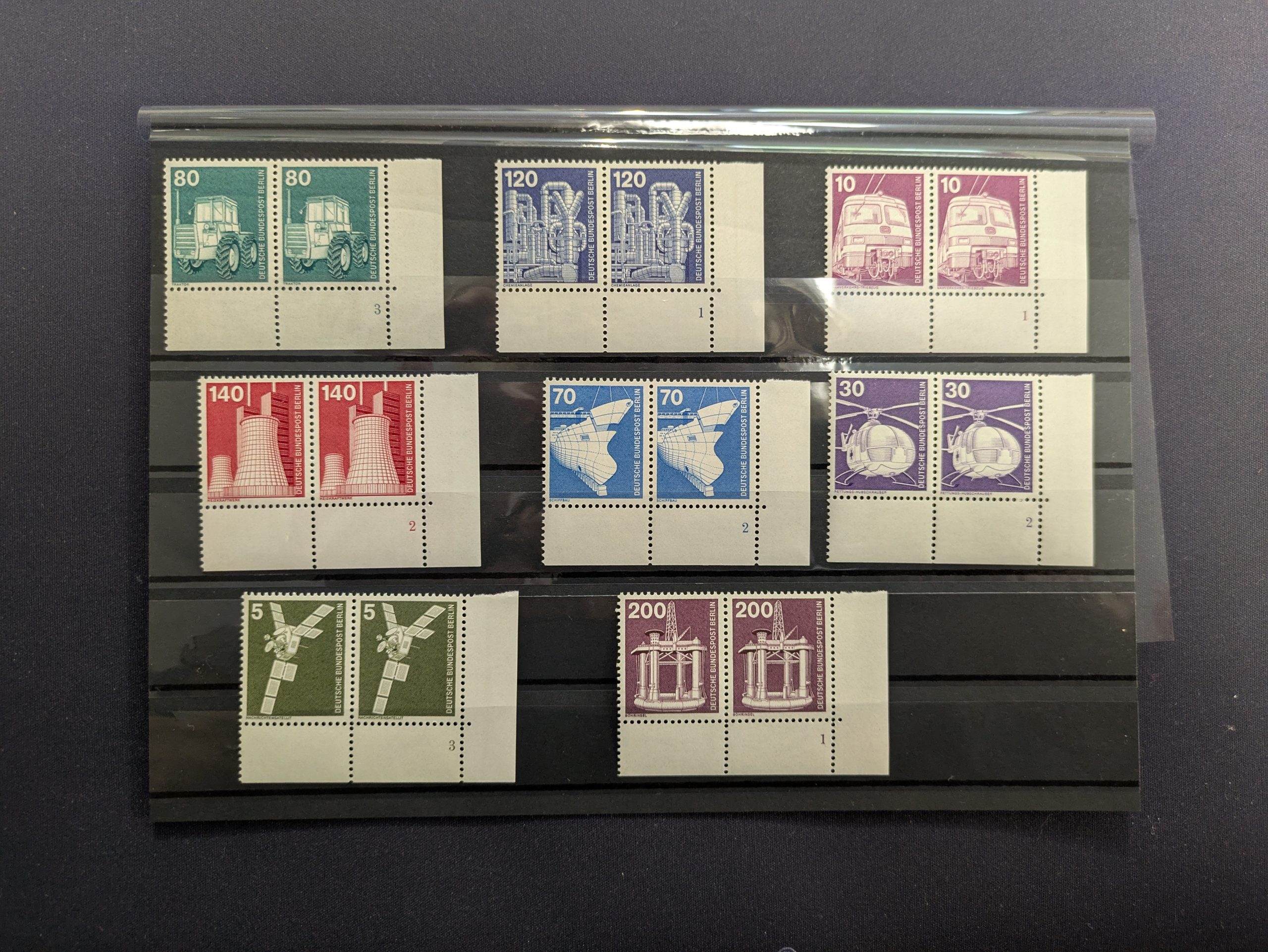 Lot mit 8 postfrischen Paaren der Bundesrepublik Deutschland. Alle als Eckrandstücke rechts unten mit Formnummer – ideale Ergänzung für spezialisierte Briefmarkensammler.