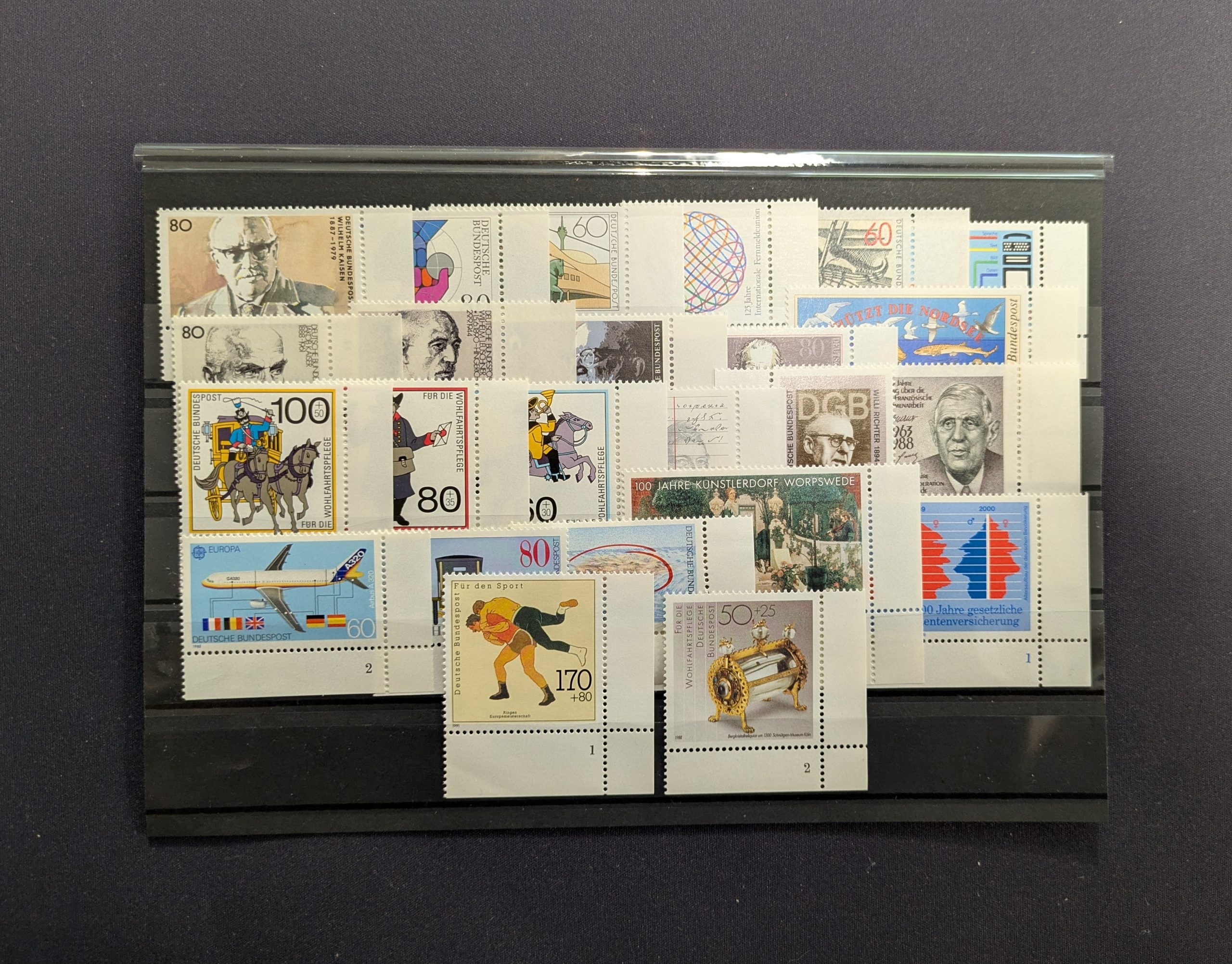 Dieses Lot umfasst 24 postfrische Briefmarken der Bundesrepublik Deutschland, die sich durch ihre besondere Erhaltung und Ausführung auszeichnen. Jedes Stück liegt als Eckrandstück rechts unten mit Formnummer vor – ein Detail, das diese Marken sowohl für spezialisierte Sammler als auch für Investoren besonders interessant macht.
