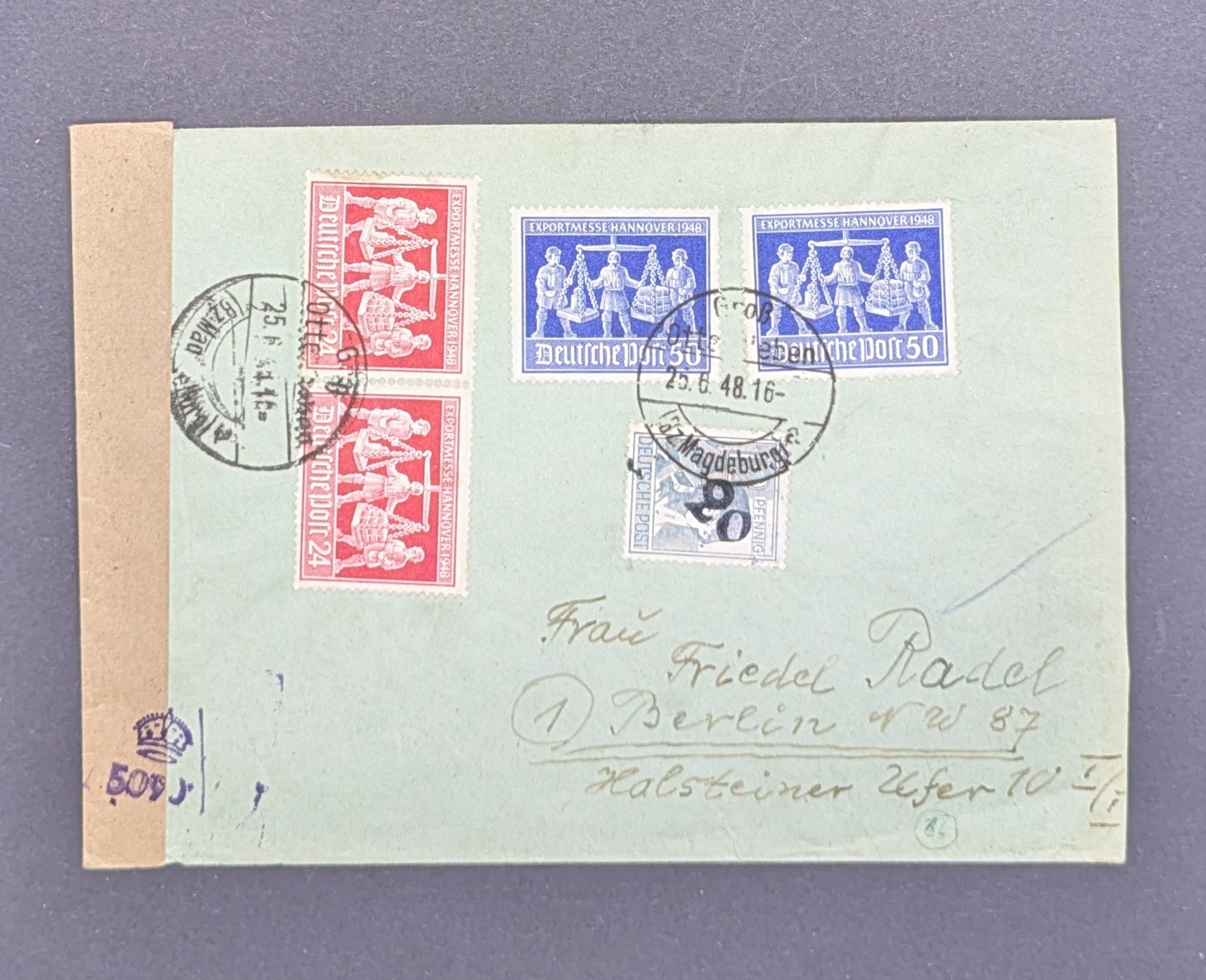 Solche Zensurbriefe mit Zusatzfrankaturen zählen zu den besonders gesuchten Belegen der Nachkriegsphilatelie, da sie den Übergang von der alten zur neuen Währung (Reichsmark zu Deutscher Mark) anschaulich dokumentieren.