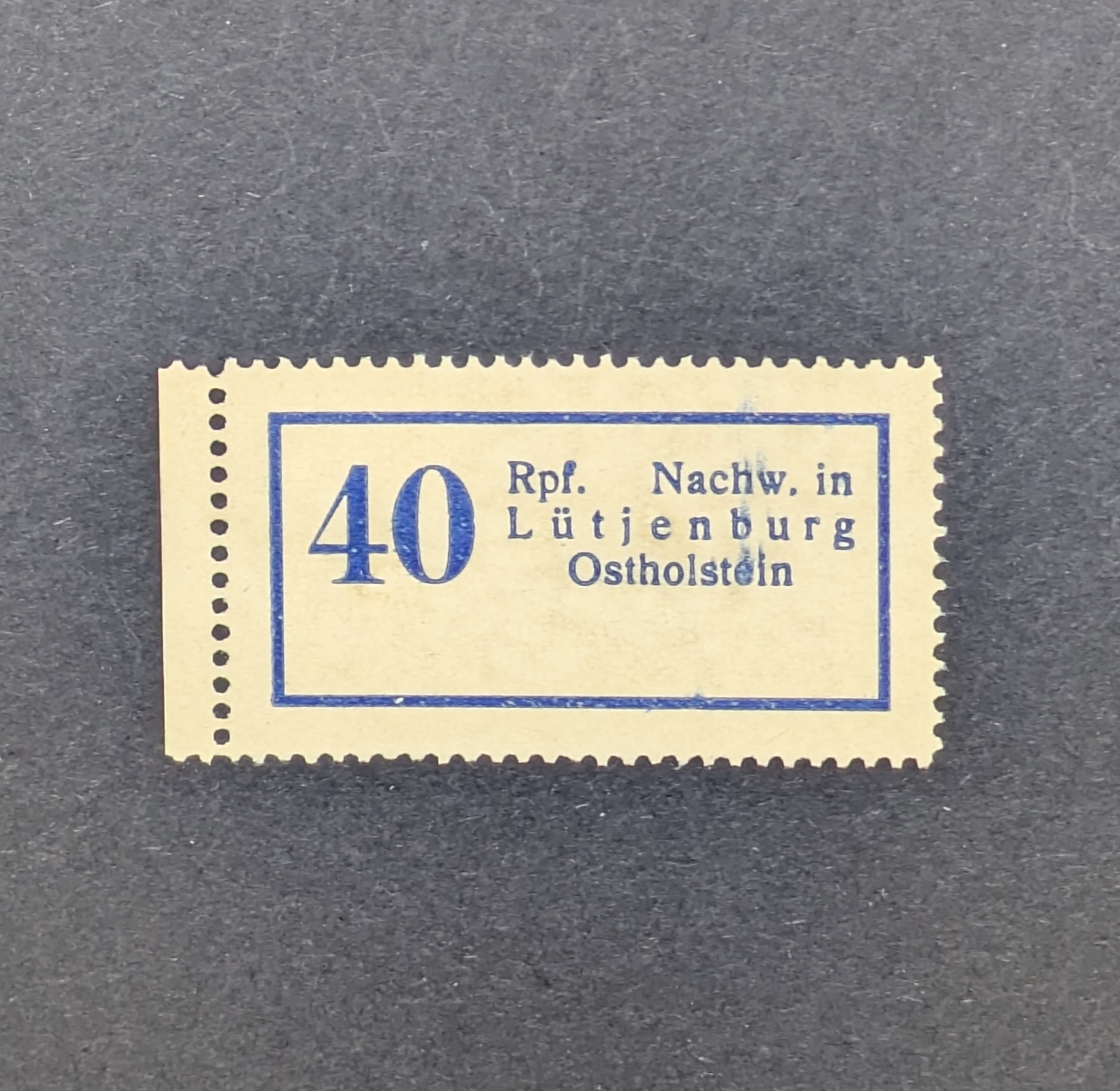 Die Briefmarke stammt aus der Region Lütjenburg, Schleswig-Holstein, und spiegelt die wirtschaftlich schwierige Situation der Post nach dem Zweiten Weltkrieg wider, als viele Marken in kleiner Auflage lokal gedruckt wurden. Trotz fehlendem Gummi ist die Marke in hervorragendem Zustand, ohne Beschädigungen oder Knicke, und zeigt die typische Druckqualität dieser seltenen Ausgabe.