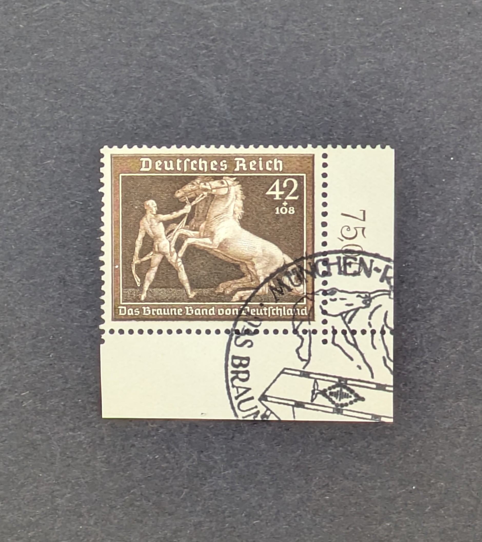 Zum Verkauf steht ein gestempeltes Eckrandstück unten rechts der Mi.-Nr. 699. Dieses seltene Stück ist ein Bogeneckstück, sorgfältig erhalten und zeigt einen klaren, gleichmäßigen Stempelabdruck, der die Echtheit unterstreicht. Laut dem Michel-Handbuch Bogenecken wird dieses Eckrandstück mit 130 € bewertet, was seinen hohen Sammlerwert unterstreicht.