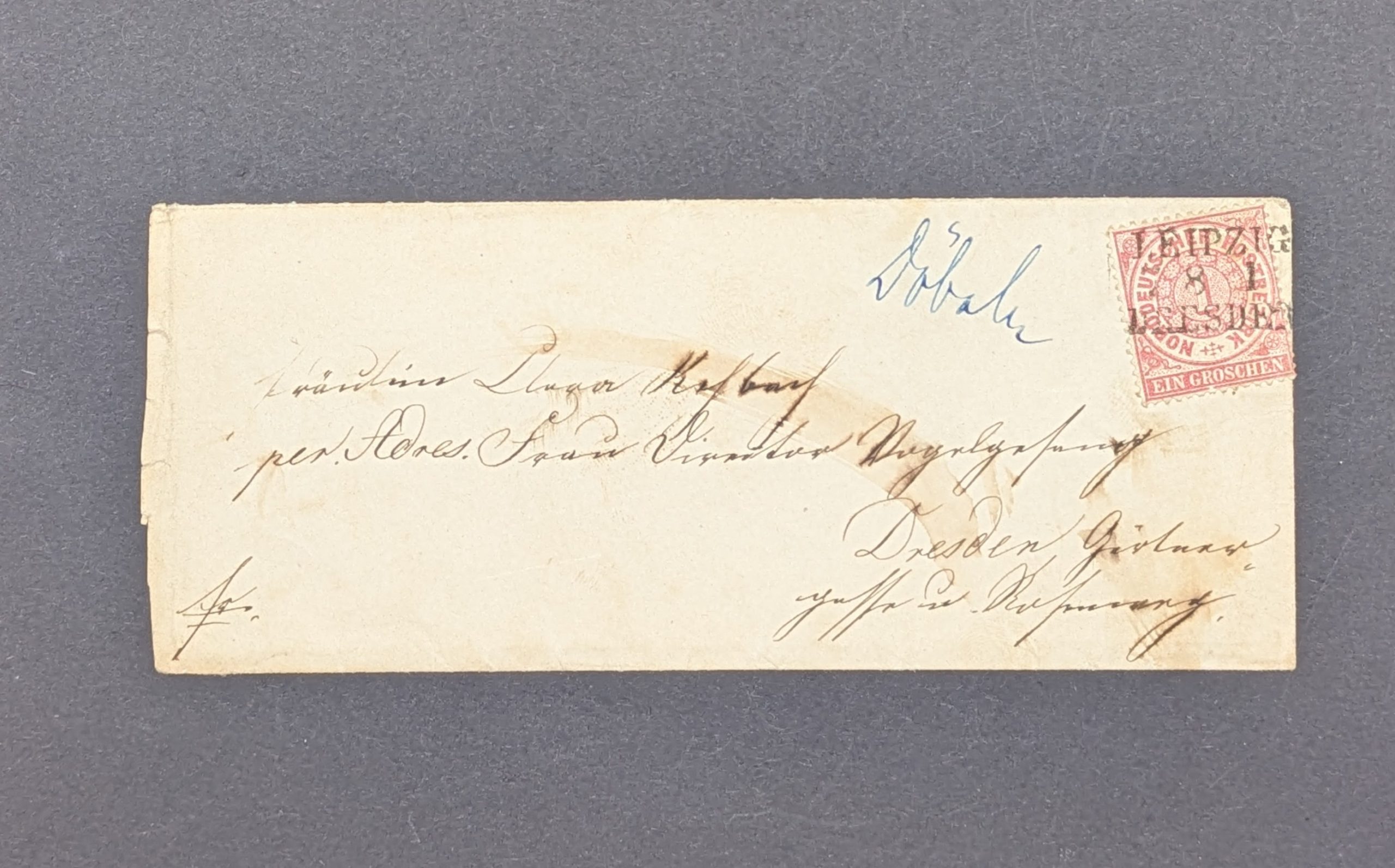 Zum Angebot steht ein historischer Brief, frankiert mit der Mi.-Nr. 16 des Norddeutschen Postbezirks (Norddeutscher Bund). Besonders interessant ist die Entwertung mit dem nachverwendeten sächsischen Bahnpoststempel L3 „Leipzig–Dresden“ in schwarzer Farbe – eine seltene Kombination, die sowohl für Philatelisten als auch für historische Postgeschichte von hoher Bedeutung ist.