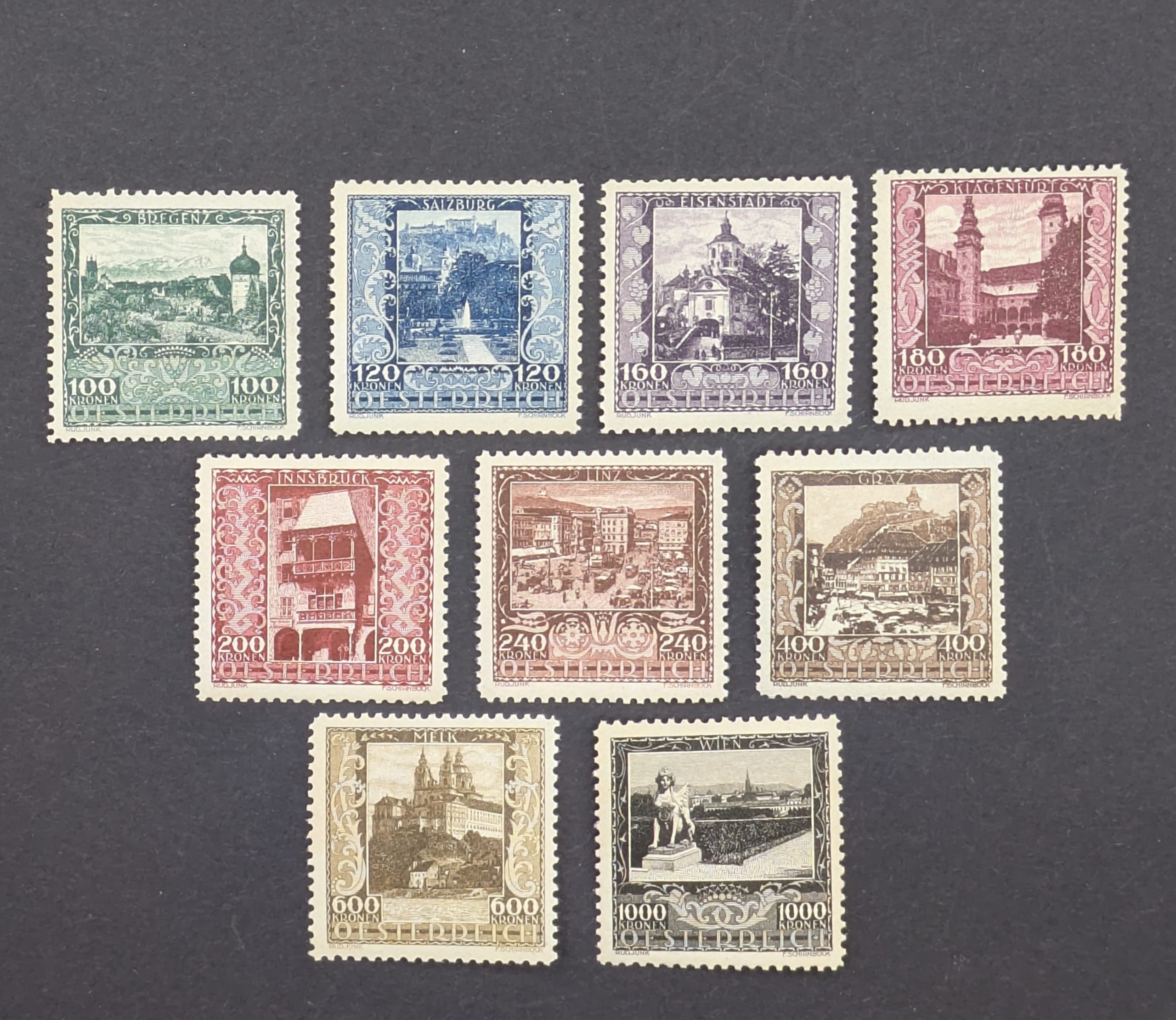 Mit diesem Satz sichern Sie sich ein Stück österreichische Postgeschichte aus der Inflationszeit, das den Übergang zwischen kaiserlicher Tradition und republikanischer Gestaltung dokumentiert.