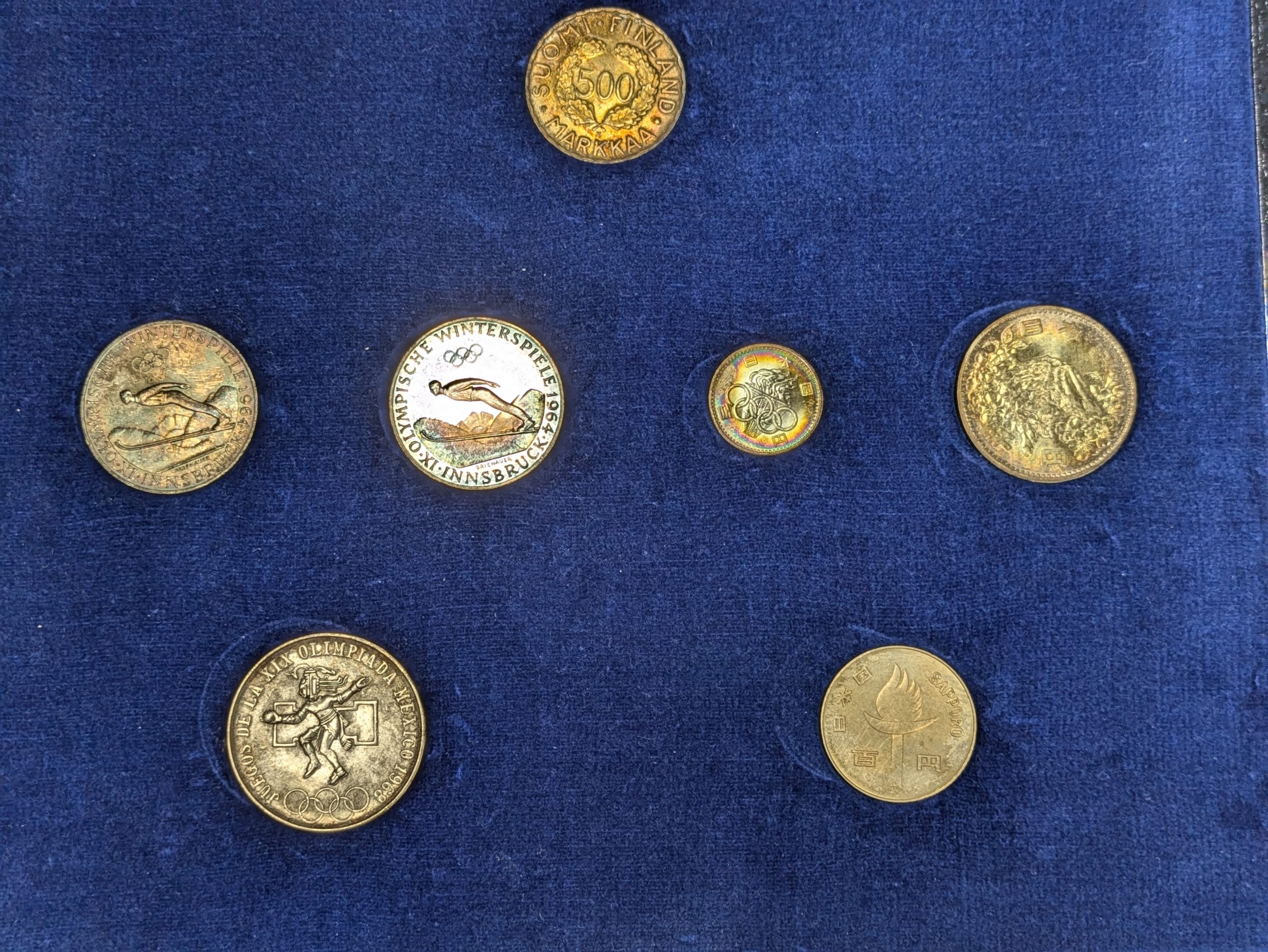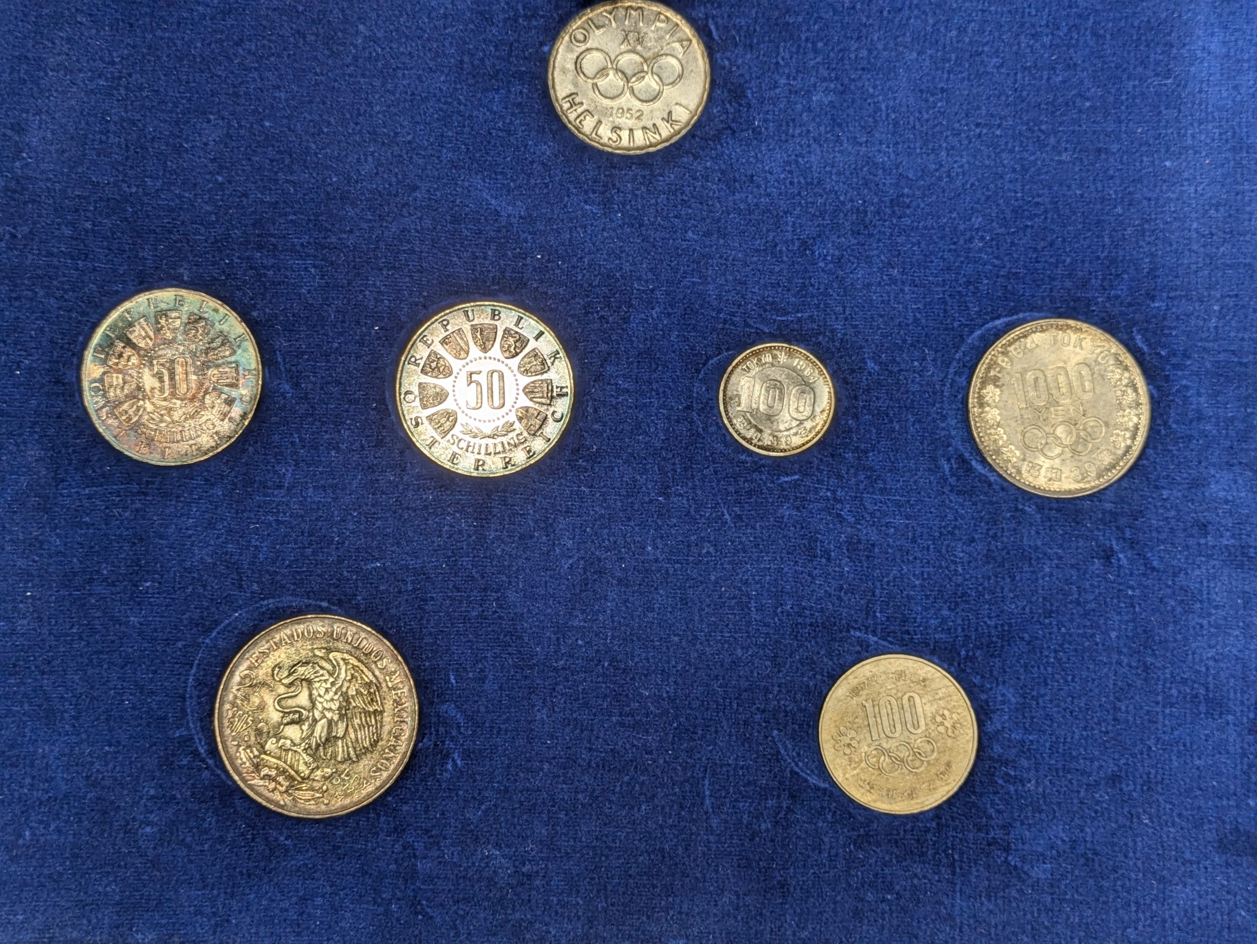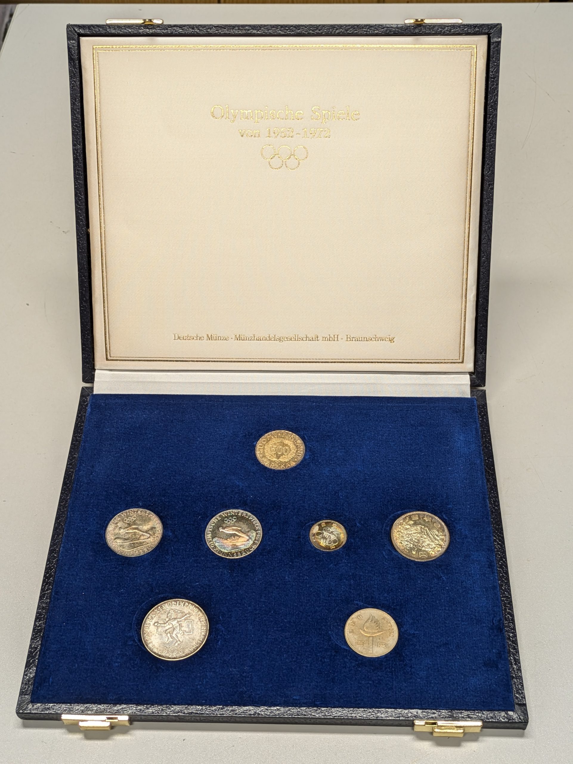 7 originale Gedenkmünzen zur Olympiade 1952–1972