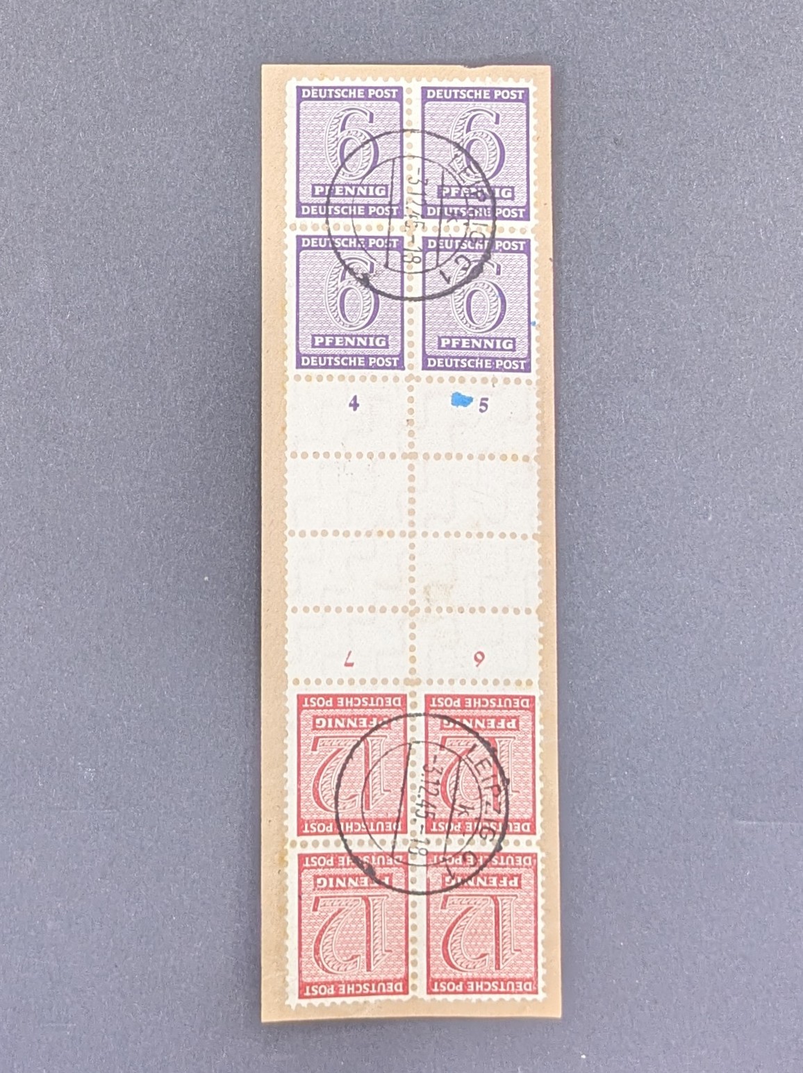 Die Westsachsen-Serie ist bekannt für ihre Vielfalt an Zusammendrucken, die in verschiedenen Kombinationen und Formaten erschienen sind. Der senkrechte Zusammendruck Mi.-Nr. SKZd 7 ist aufgrund seiner Seltenheit und der ansprechenden Entwertung besonders bei Sammlern gefragt.